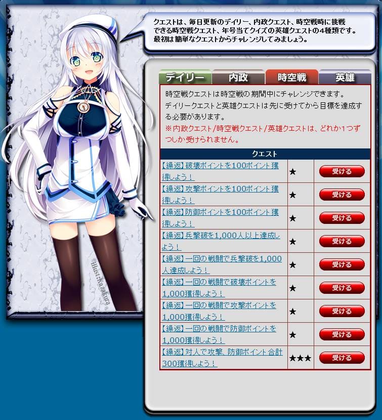 2022-12-26 時空戦クエストこそ一括ボタンが欲しい その他 「全てのクエストを受ける」ボタンはデイリークエストよりも時空戦クエストにこそ欲しいと感じます。 毎回「受ける」ボタンを1個ずつポチポチするのは面倒なのです。 haoden-cat.hatenablog.com